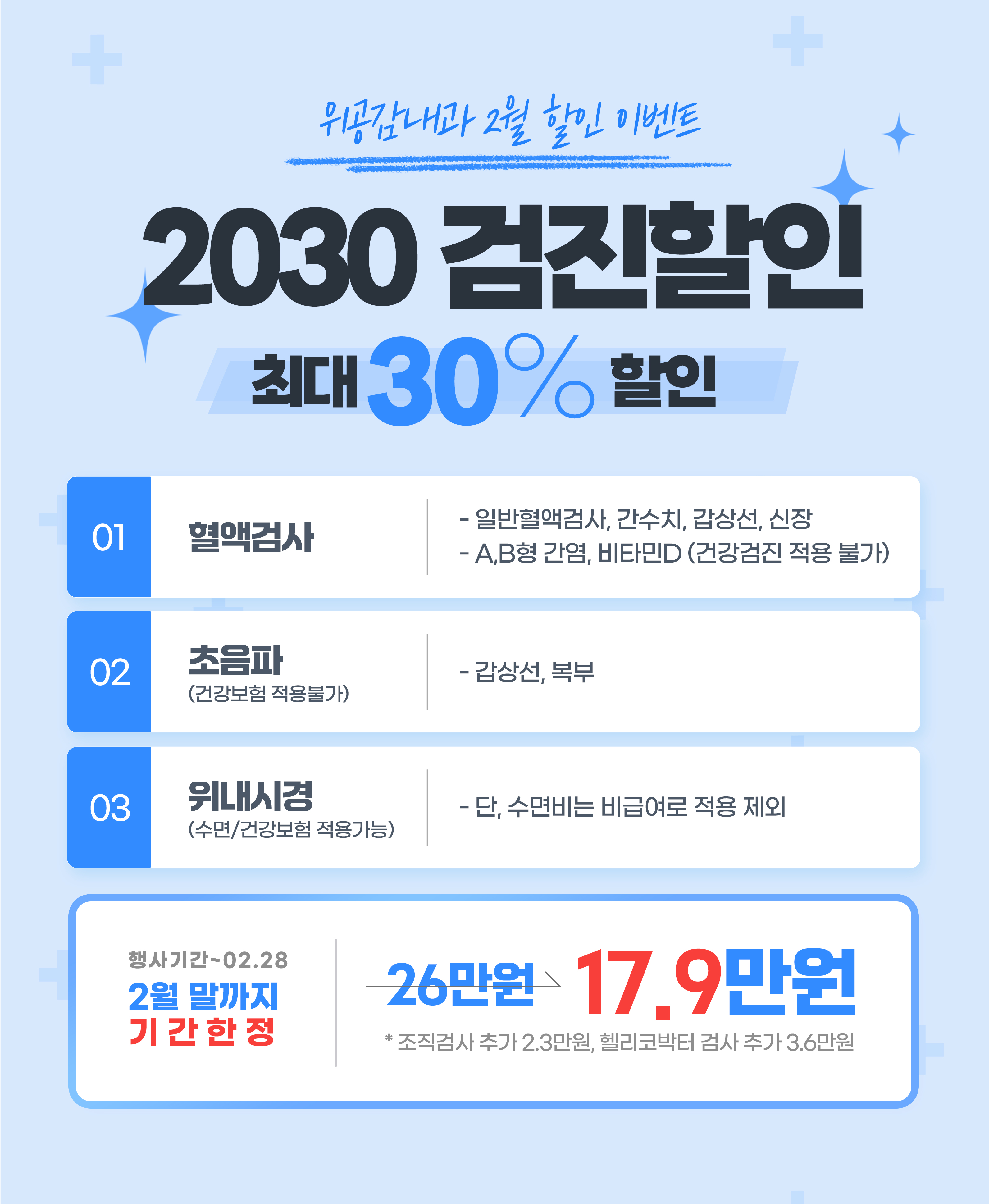 위내시경 | 본인부담 10% 혹은 없음 | 식도암, 위암, 소화성궤양 |